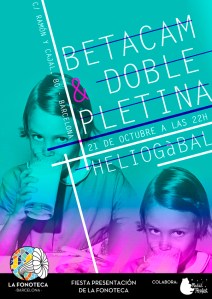 Pero faltaba algo: está claro que la música en España no se reduce a una ciudad, ni muchísimo menos, la escena independiente está activa en todos lados, y la necesidad de no centralizar la organización se hacía cada vez más grande. De esta manera, el próximo octubre dará el pistoletazo de salidad La Fonoteca Barcelona, que se encargará de promocionar a bandas nuevas tanto catalanas como del resto de España. El primer concierto será en uno de los locales míticos de la escena barcelonesa, el Heliogàbal, y el honor de abrir boca ha caído sobre los madrileños Betacam y los barceloneses Doble Pletina. La fecha, viernes 21 de octubre, a las 21.30. El precio, 5€ de nada. Yo voy.