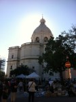 El martes tocaba mercadillo. Si en Madrid hay Rastro y en Barcelona Els Encants, Lisboa se los come a los dos con patatas con Feira da Ladra, un mercadillo enorme, salvaje, que mezcla puestos de cemento con gente arrastrada por el suelo vendiendo prácticamente cualquier cosa. Para subir, lo suyo es coger el 28, ese tranvía mítico que sale en todas las fotos de la ciudad. Ahí vi el primer indicio de locura turística: estuvimos unos 40 minutos esperando para subir. Antes de ir a Feira da Ladra contemplamos la vista más grandiosa de la ciudad desde el Miradouro de Graça y comimos en un bar de la zona, otra vez espectacular. Nos tomamos la Super Bock de rigor en el mercadillo, donde también se puede visitar el Panteón Nacional (donde está enterrada Amália). Bajamos toda Alfama caminando, entramos en la catedral y, ya que teníamos el ritmo en el cuerpo y no estábamos cansados, anduvimos hasta Cais do Sodre para coger un ferry al otro lado del Tajo, a Cacilhas. Allí hay un bar, Ponto Final, que es una maravilla. Estaba cerrado, así que nos consolamos en el Atira-te ao Rio, donde nos tomamos un vinho verde en el ambiente más idílico que uno pueda imaginar: atardeciendo, con Lisboa enfrente, el río que ya es casi mar con olas, el puente 25 de Abril al lado… Una maravilla. Se nos hizo de noche y nos fuimos al hotel, derrotados, a dormir. Pero al final sacamos fuerzas para ir a Esplanada, el barcito de Príncipe Real en medio del parque.